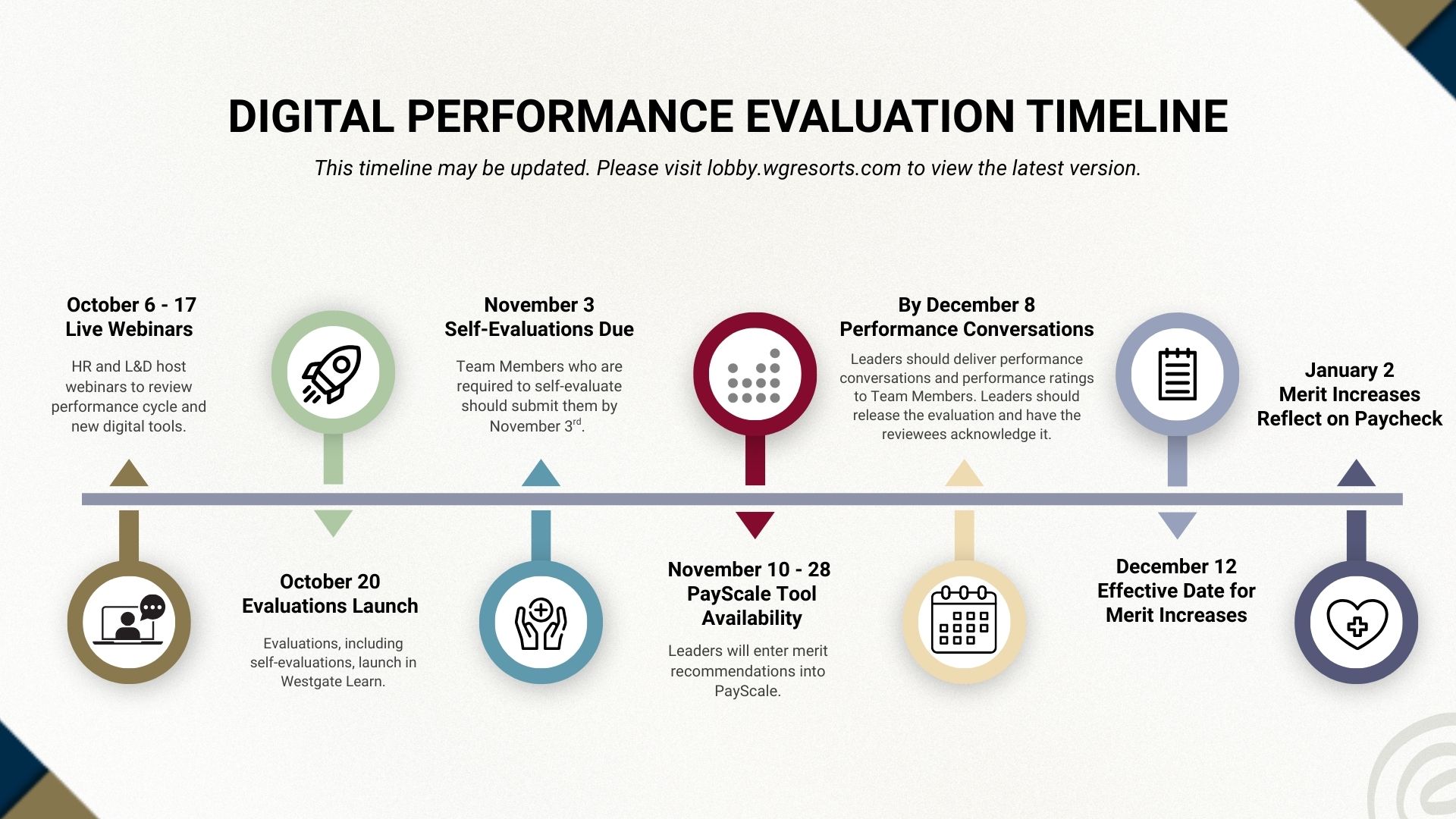 • By December 8 – Leaders should deliver performance conversations and performance ratings to Team Members. Leaders should release the evaluation and have the reviewees acknowledge it.